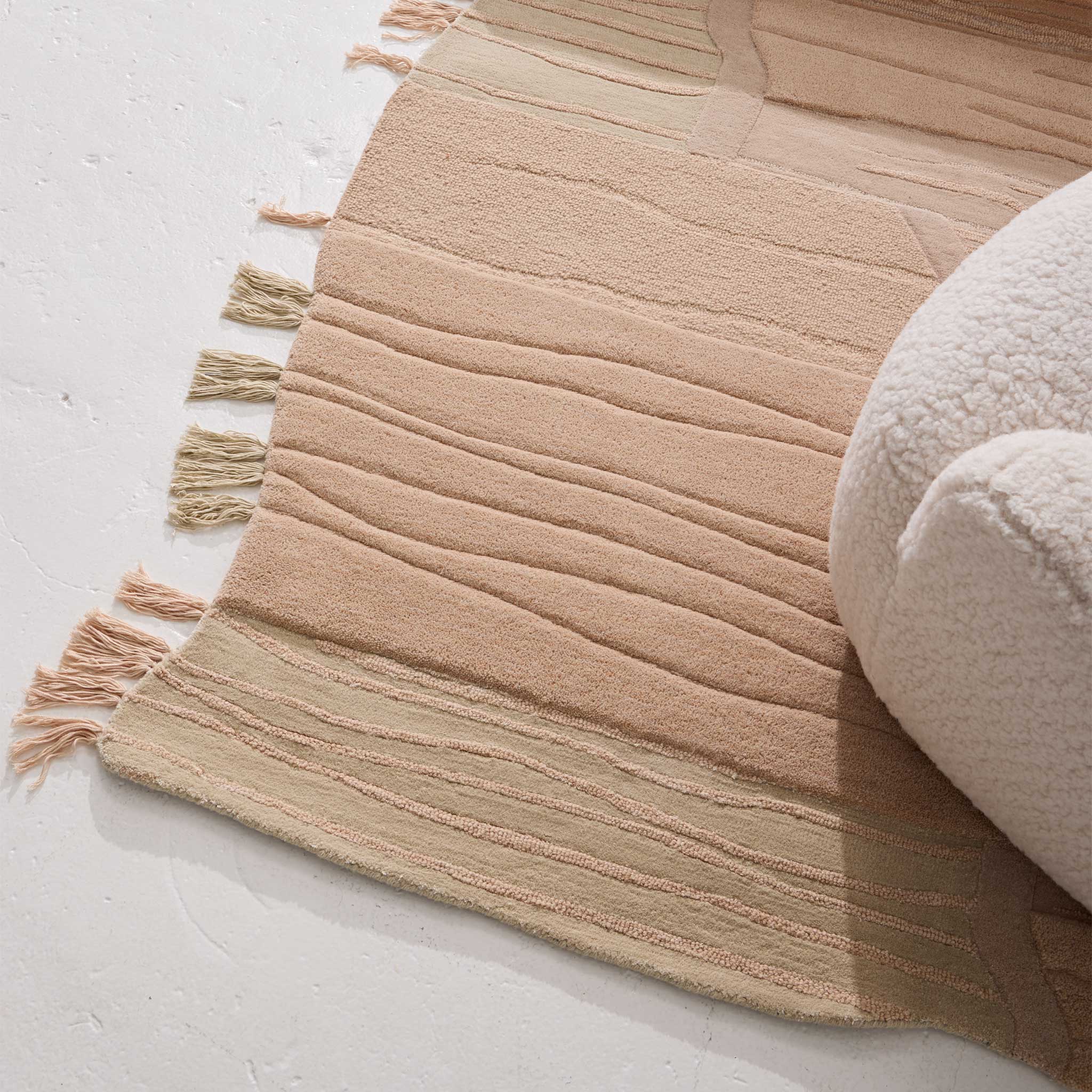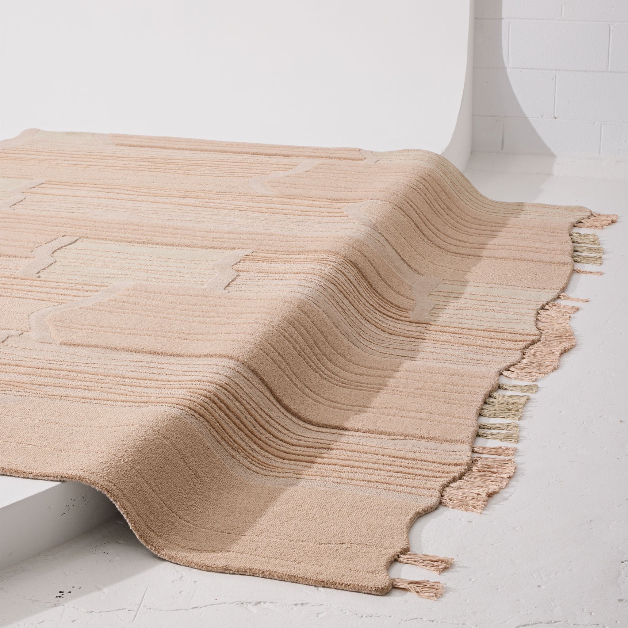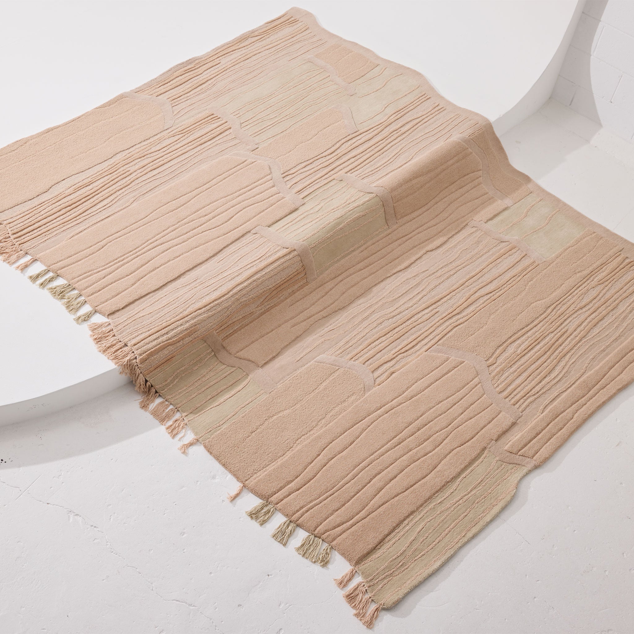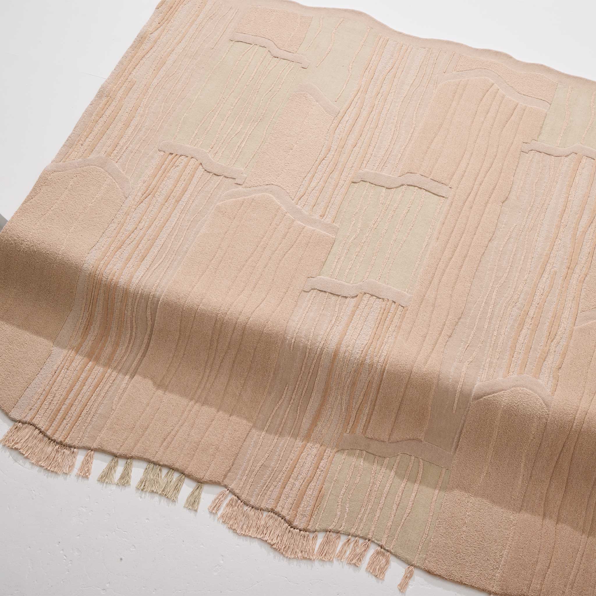 Behold the Giant Causeway rug from Tappeti, a multidimensional design that captures the natural ruggedness and ancient beauty of its namesake in Northern Ireland. Soft pink stone shades rise as columns of carved cut pile, precisely defined by lines of loop, creating a tactile representation of this extraordinary landscape.