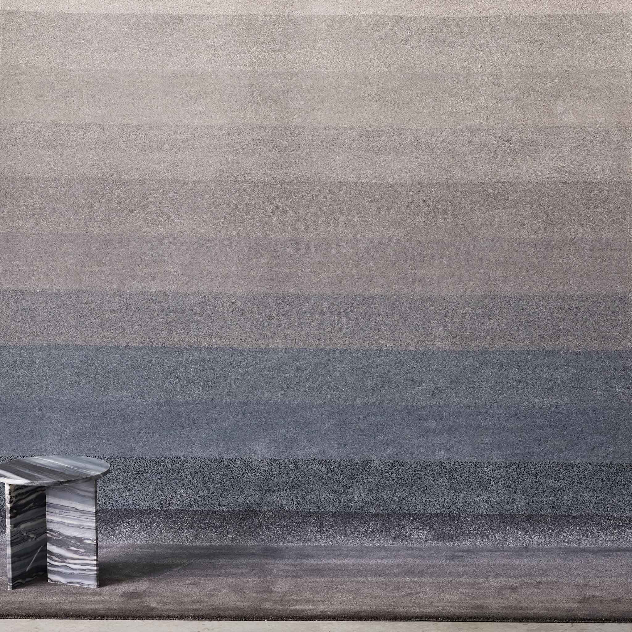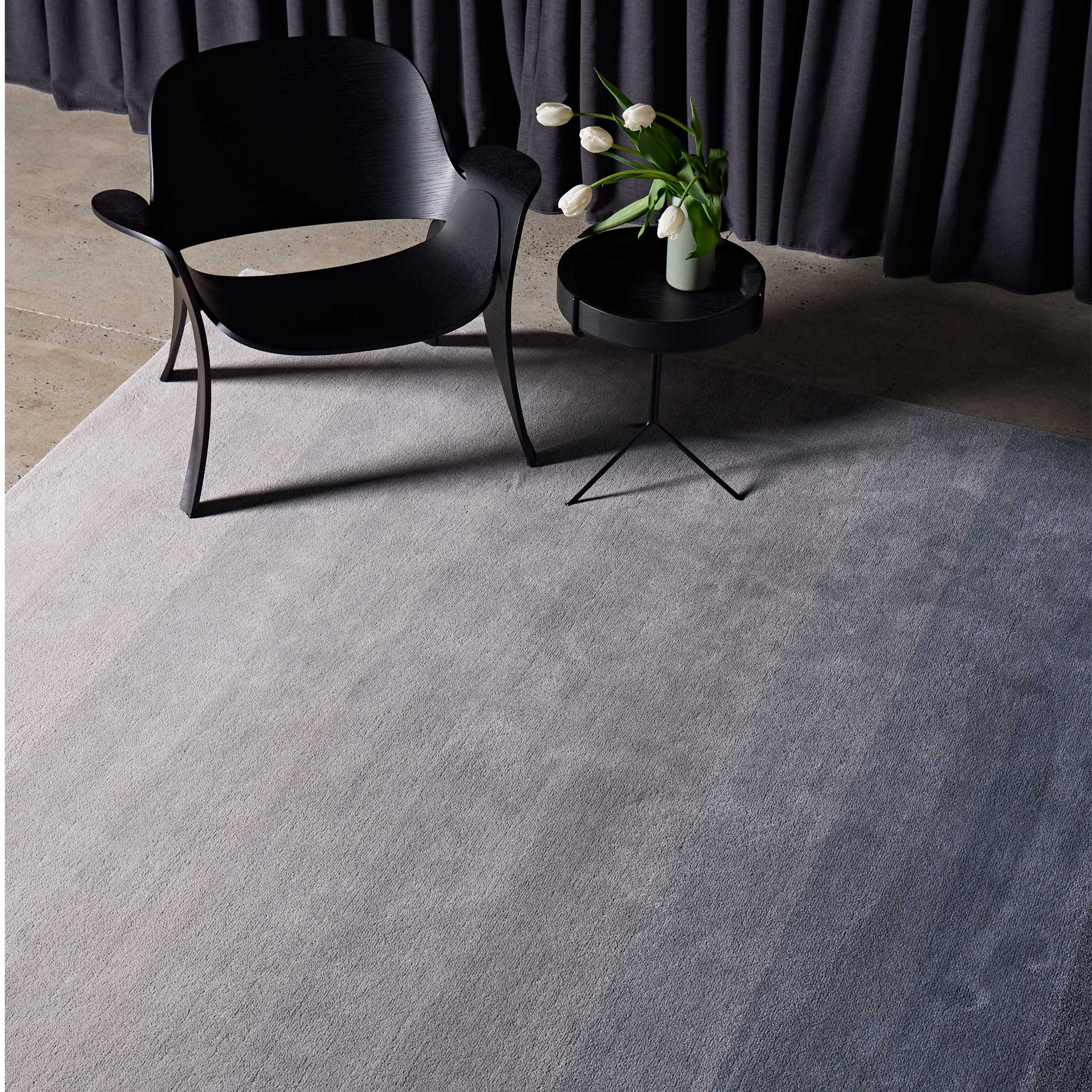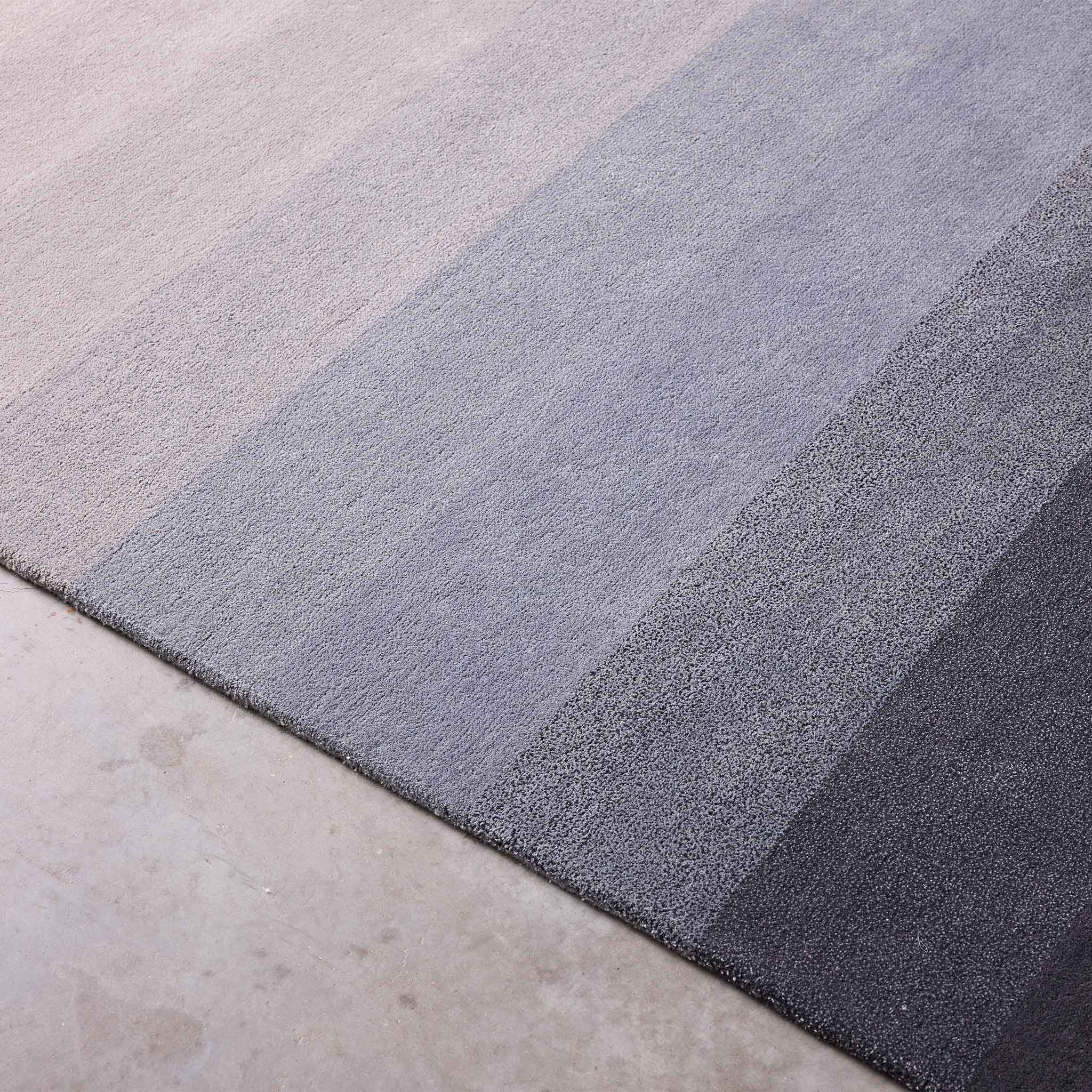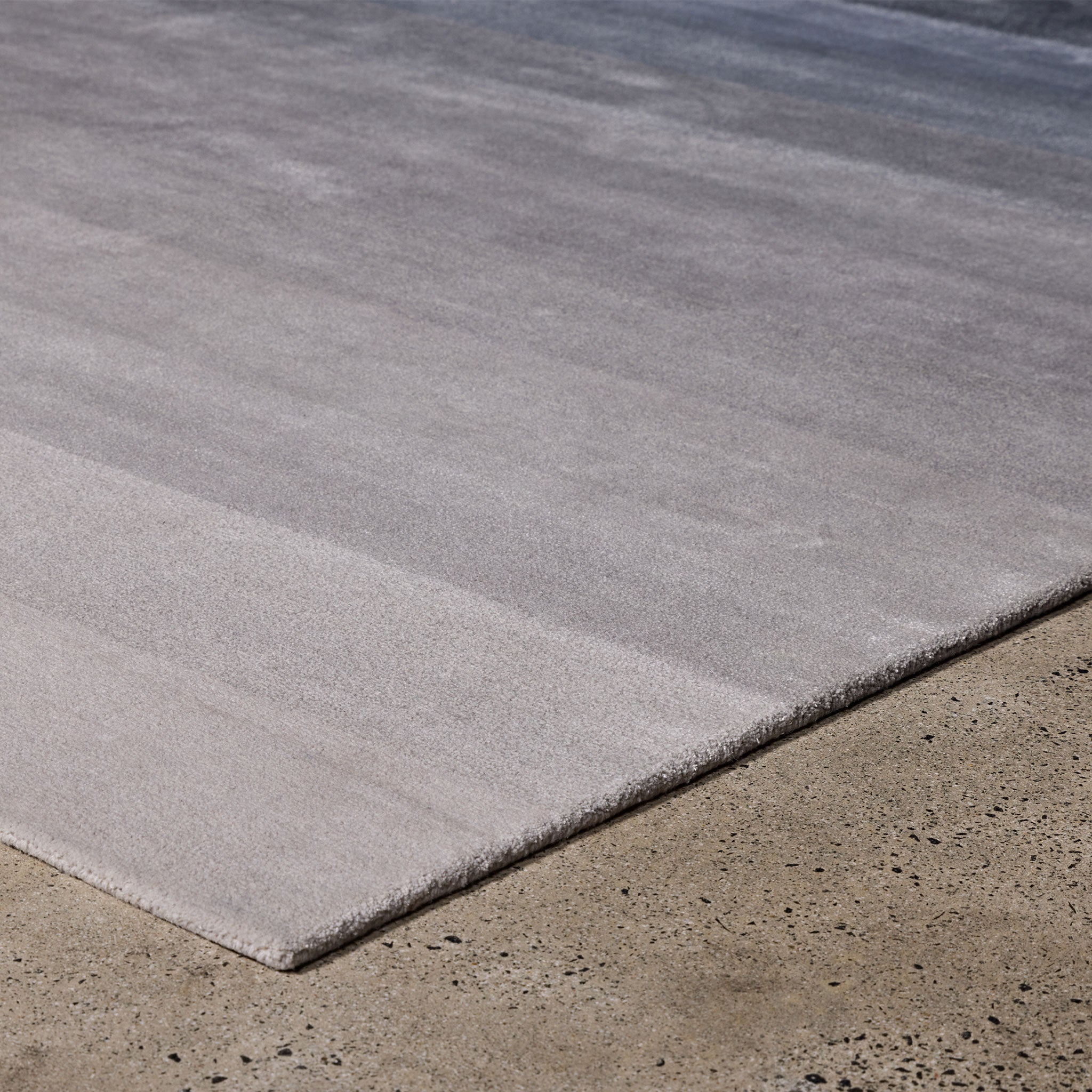 Unveiling a world of subtle tonal shifts, the Tappeti Gradient Graphite rug is a hand-tufted statement piece that explores the profound beauty within a spectrum of greys, bringing a sophisticated and subtly textured depth to any interior. Witness a compelling gradient unfold as the softest whispers of grey seamlessly transition into the rich, powdery depths of charcoal, creating a monochromatic landscape of subtle variation and refined elegance.