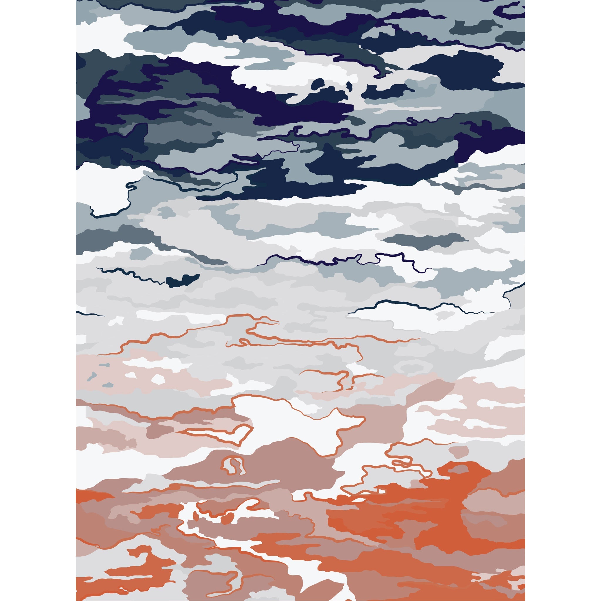 The Tappeti Gradient Landscape rug displays a graceful shift in tones, artfully rendered to move from the deep blues of the upper atmosphere, through the soft greys of a lingering mist, to the comforting warmth of earth tones. This compelling chromatic journey cultivates a foundation of sophisticated elegance that enhances a variety of interior styles, adding a touch of contemporary serenity and organic connection.