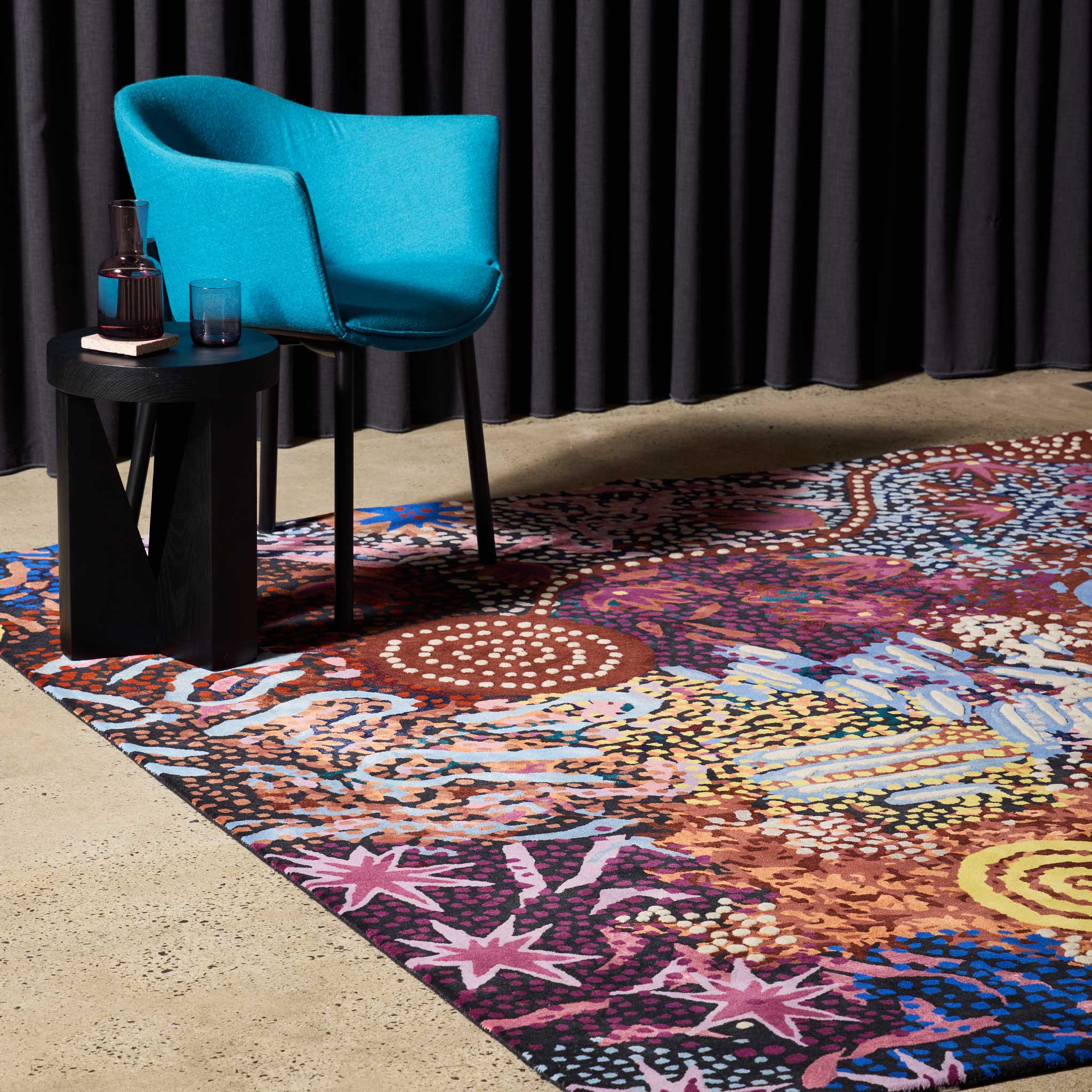 The Indigenous Collection translates original artworks by First Nation artists into three-dimensional luxury rugs using the finest materials such as wool and silk.