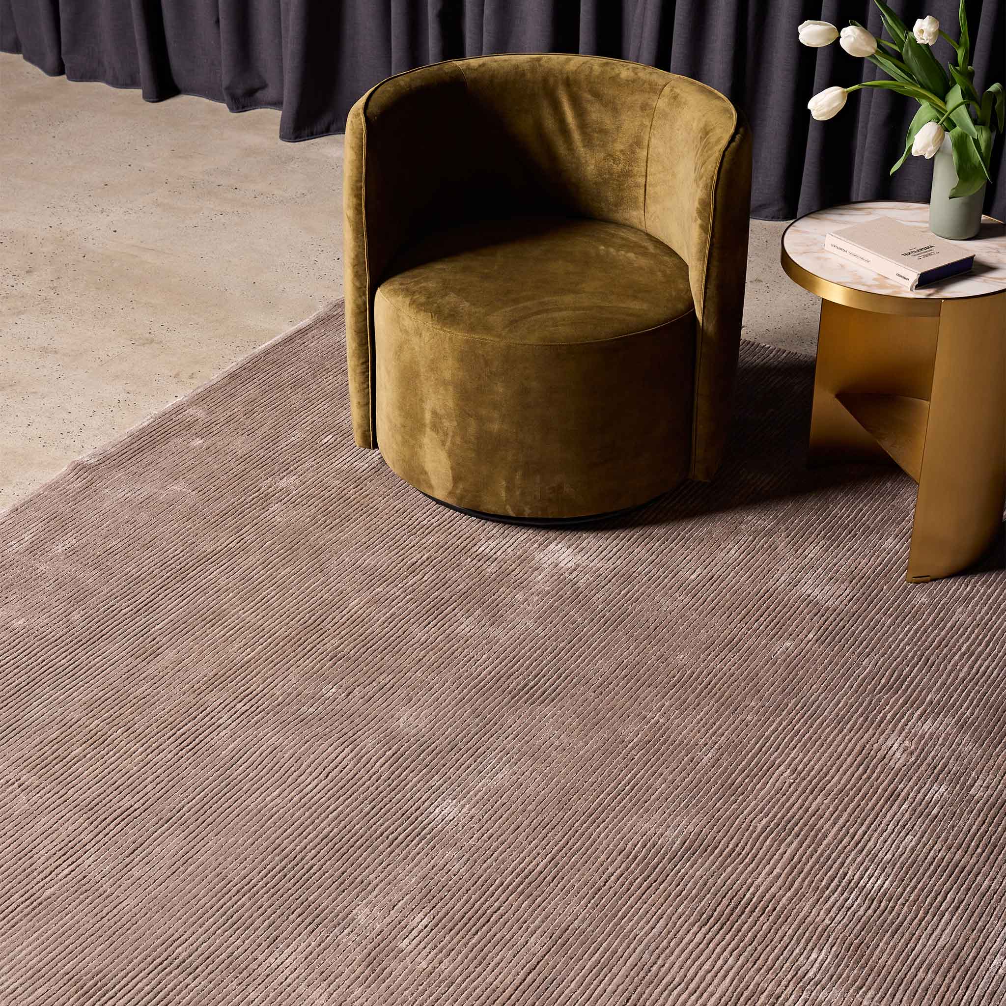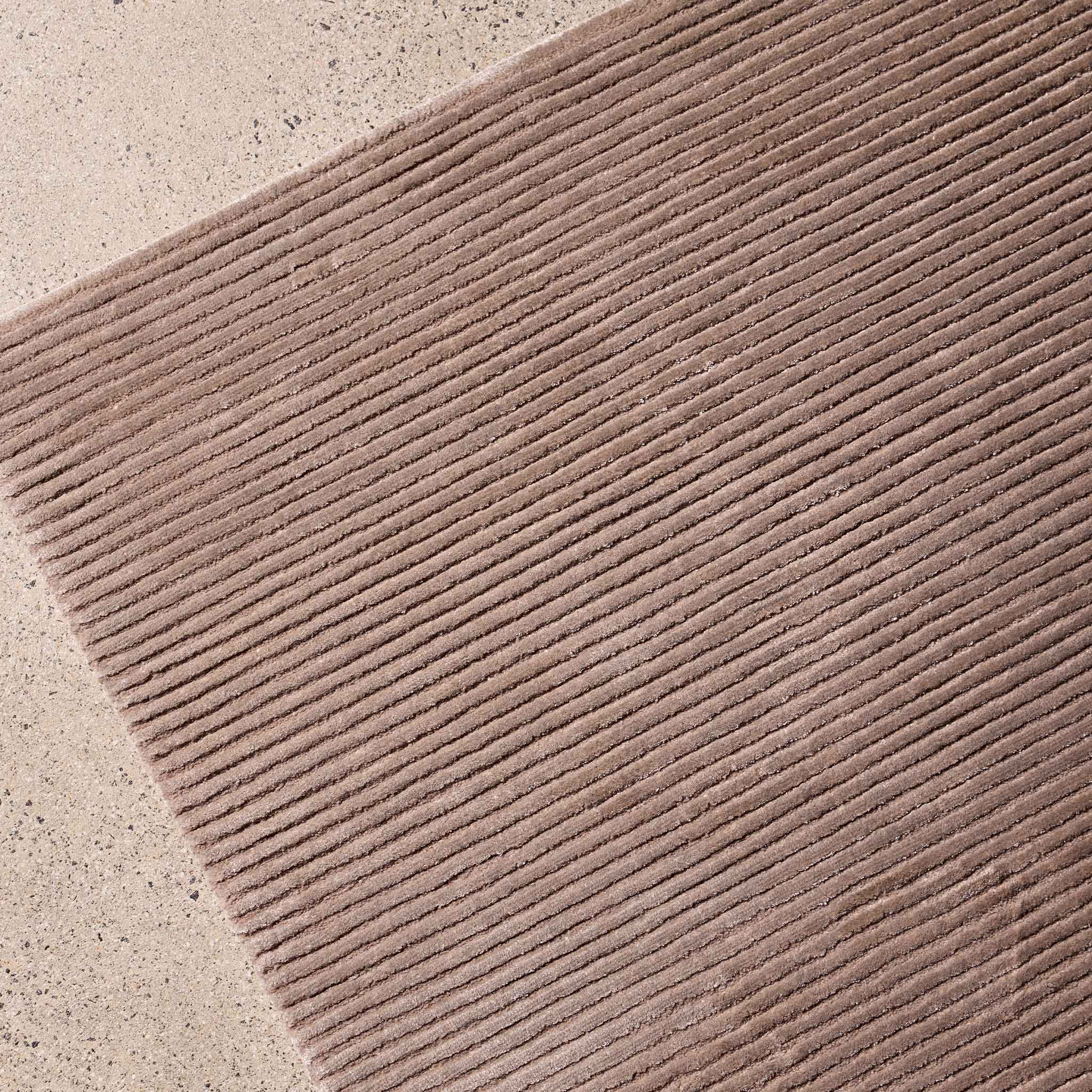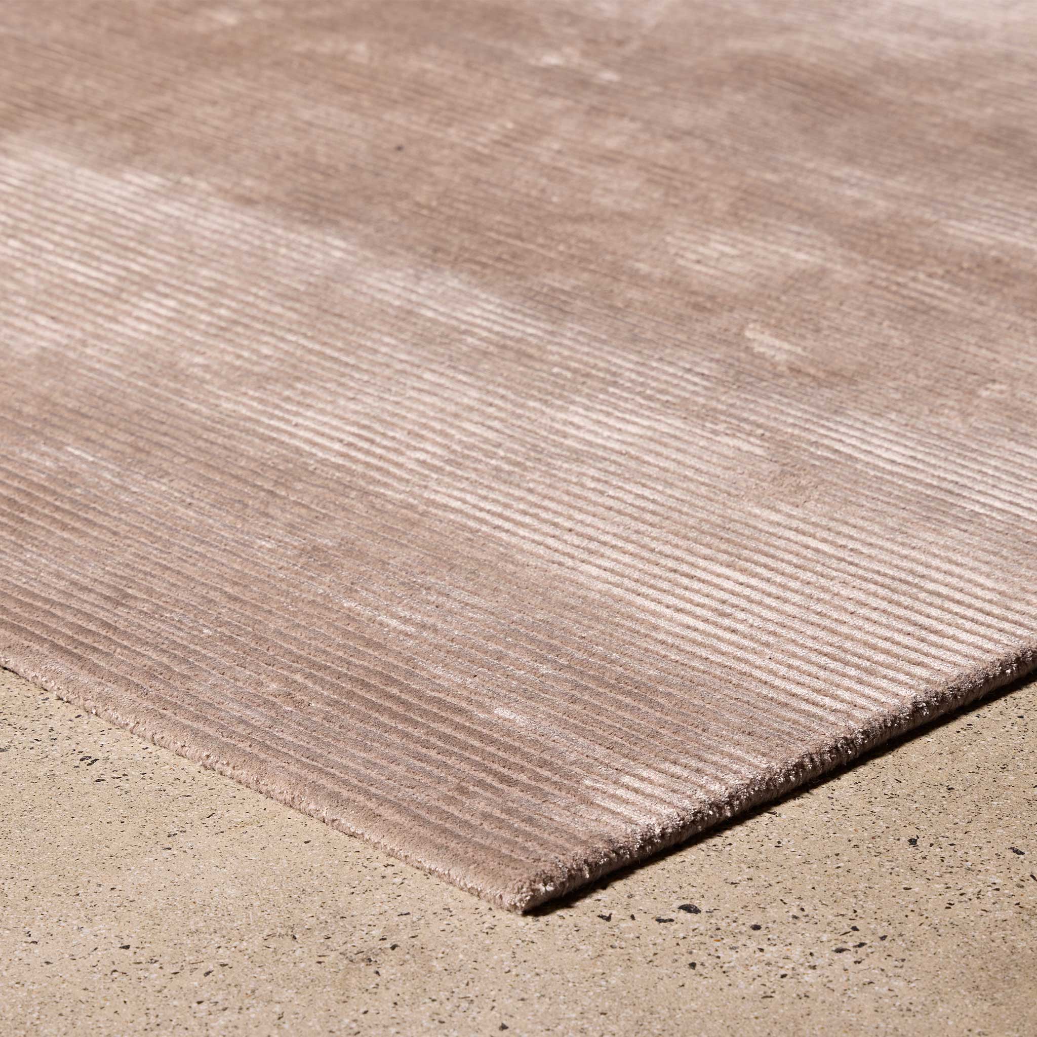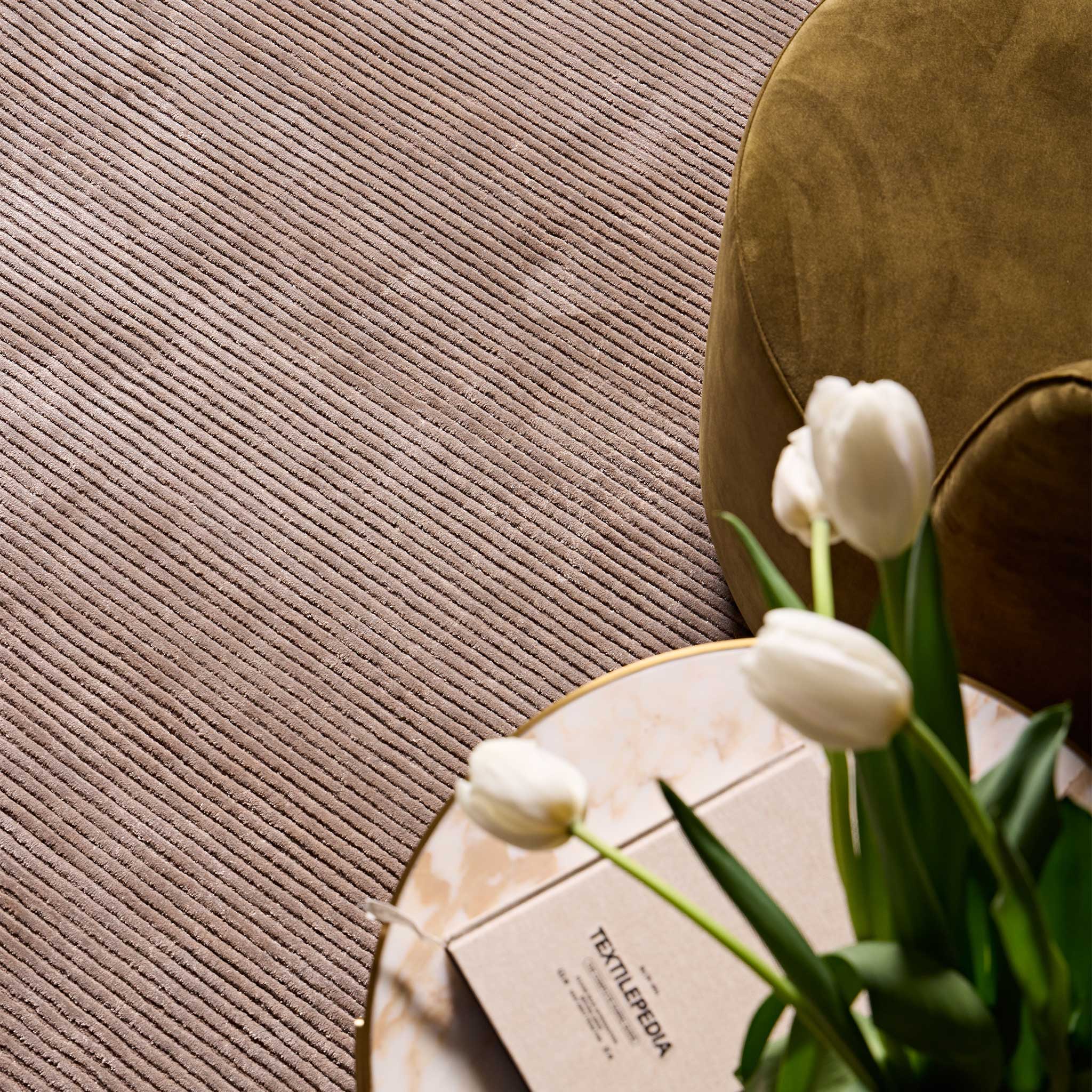 A versatile, timeless rug; shimmering neutral lines trace their way across a matte woollen base