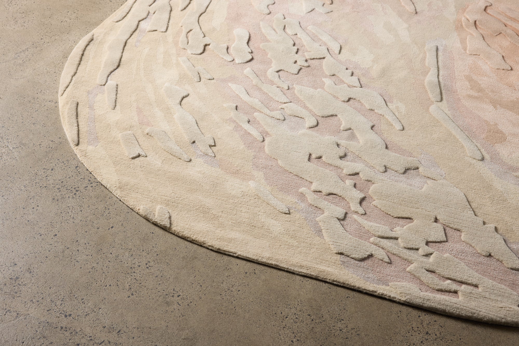 Elysium | Lissia captures the soft glow of dusk, where fading light blends into gentle warmth. Its palette moves through raspberry, fraise, peach, apricot, seashell, vale, rosy tones, misty pinks, silvers, and soft fawns—creating a harmonious gradient that feels serene, delicate, and contemporary. Hand-knotted with Tibetan wool and Art-Silk, the rug features subtle sheen and depth, with raised detailing that allows light to glide across its surface. Lissia brings a quiet, refined elegance to any interior.