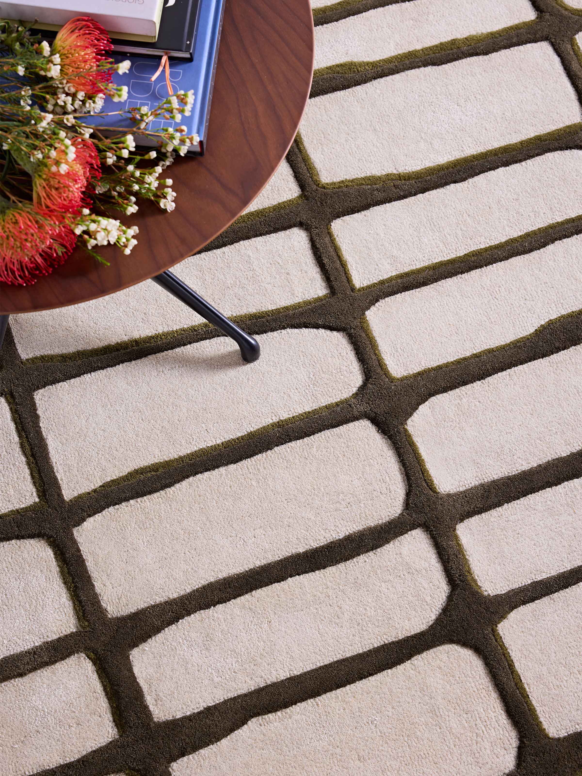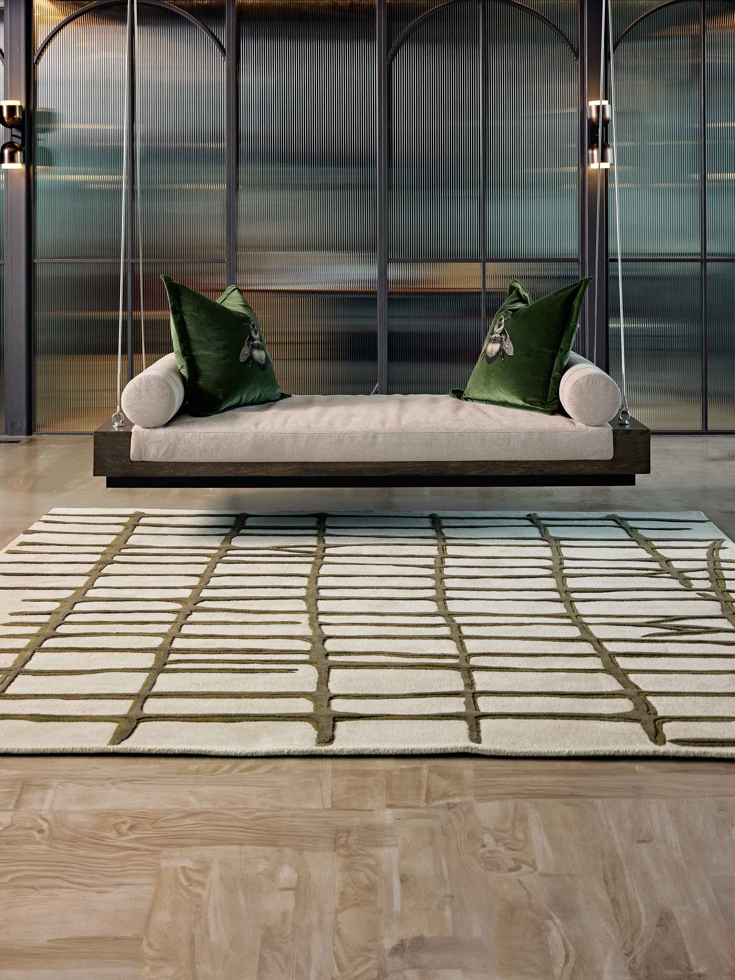 Elliot Barratt, renowned founder of Elliot James, defines his design philosophy with three words: elegance, eclecticism, and timelessness. Inspired by the serene beauty of the beach and nature, Barratt’s designs often capture the essence of the natural world through intricate patterns and textures. By combining various embossing and weaving techniques with a sophisticated, muted palette, his work reflects the belief that beauty resides in everyday life. Barrett’s design is an abstract creation inspired by forests and woodland landscapes, featuring playful lines that provide a striking contrast and dynamic presence in any space.
