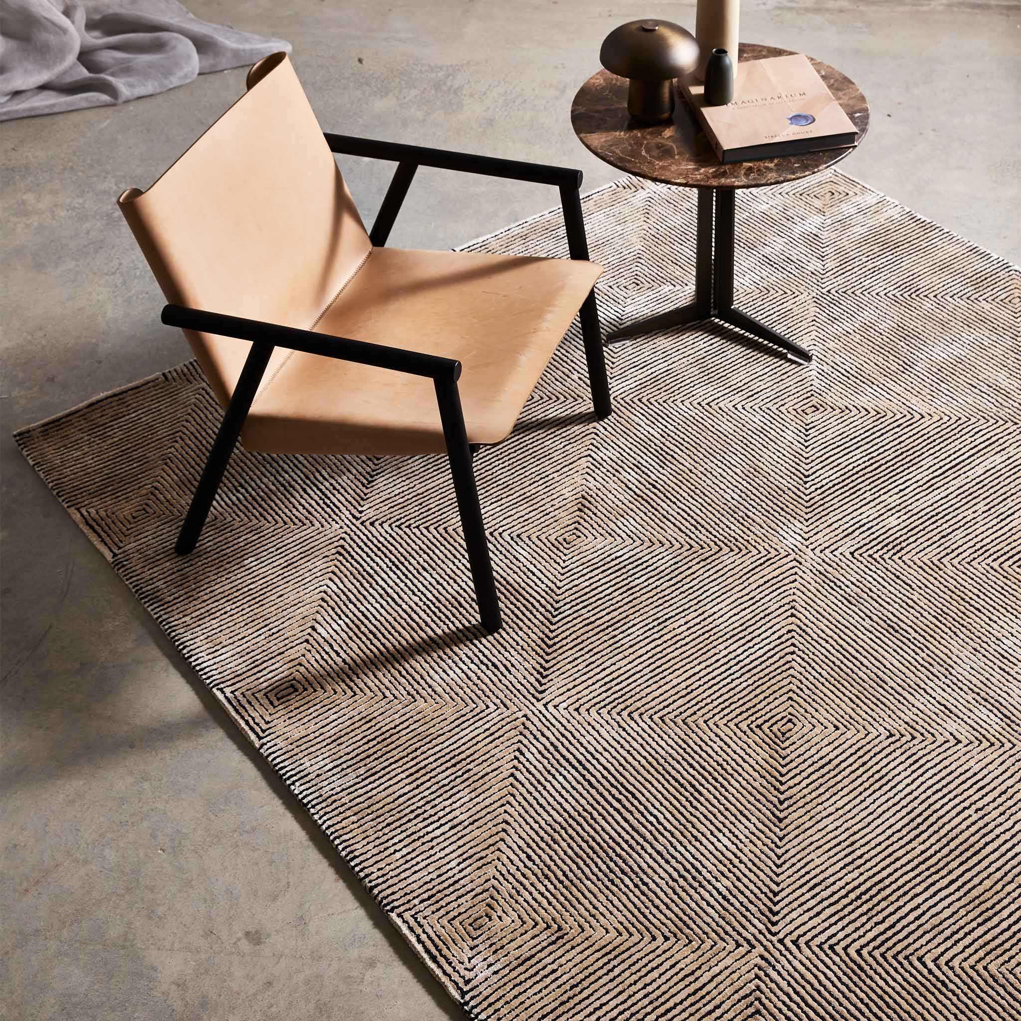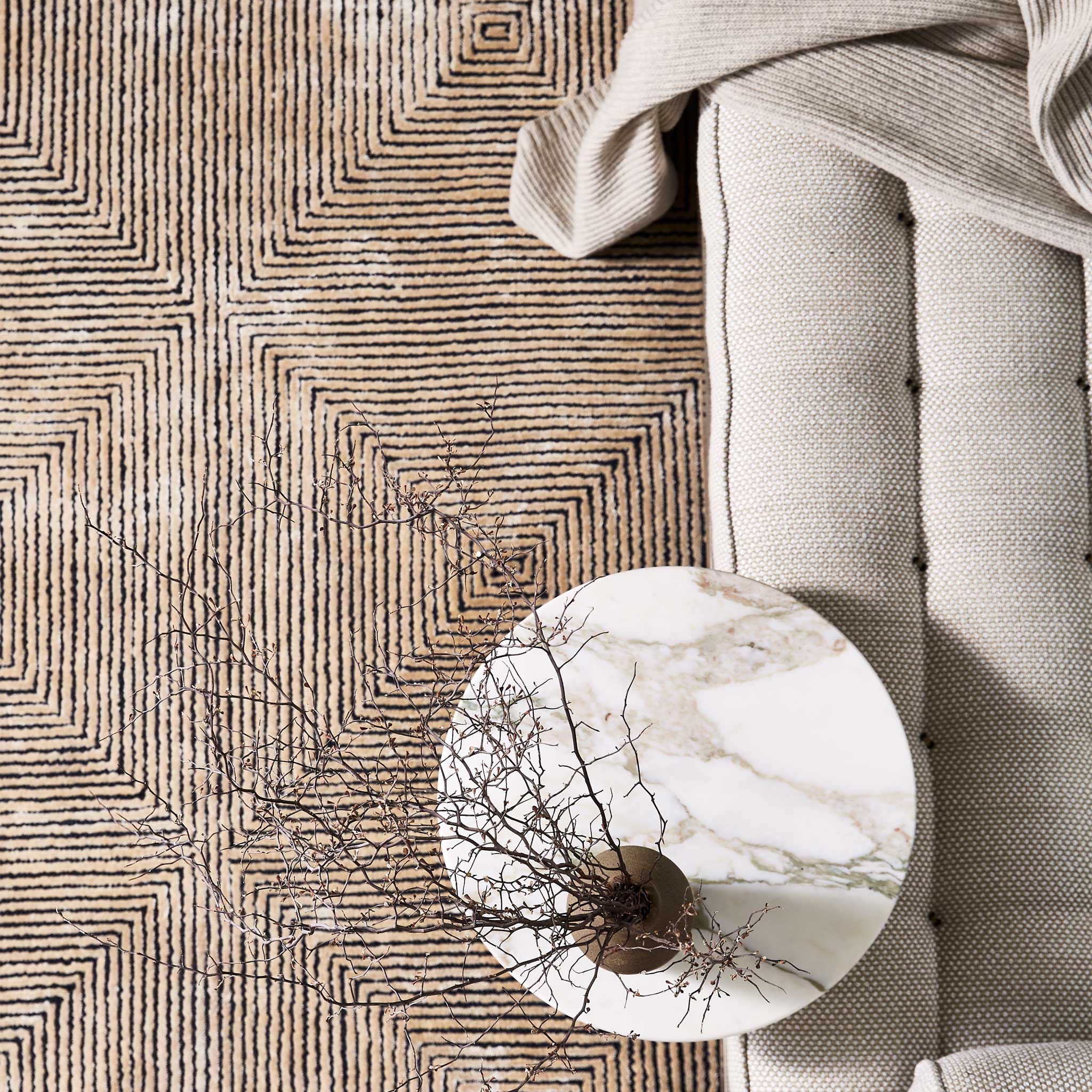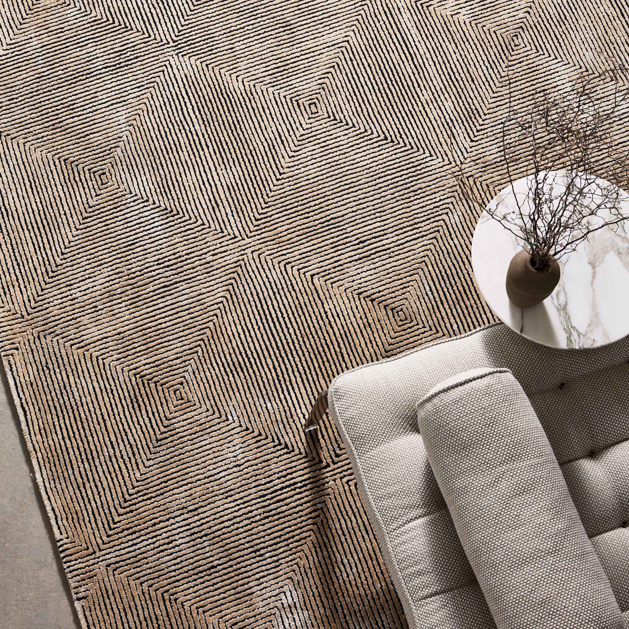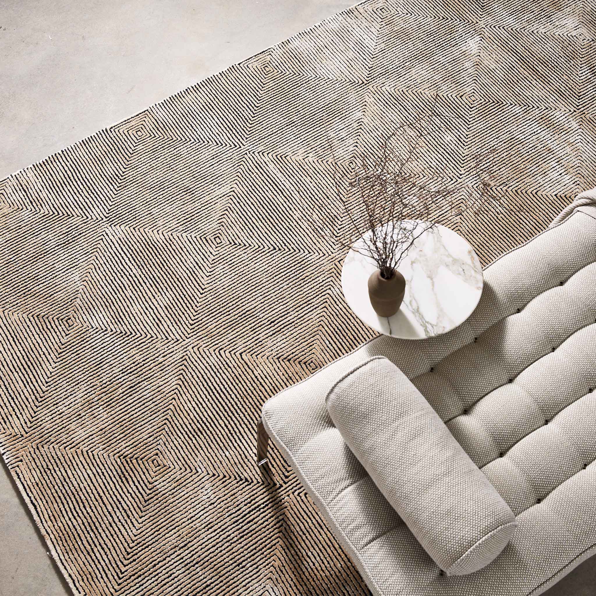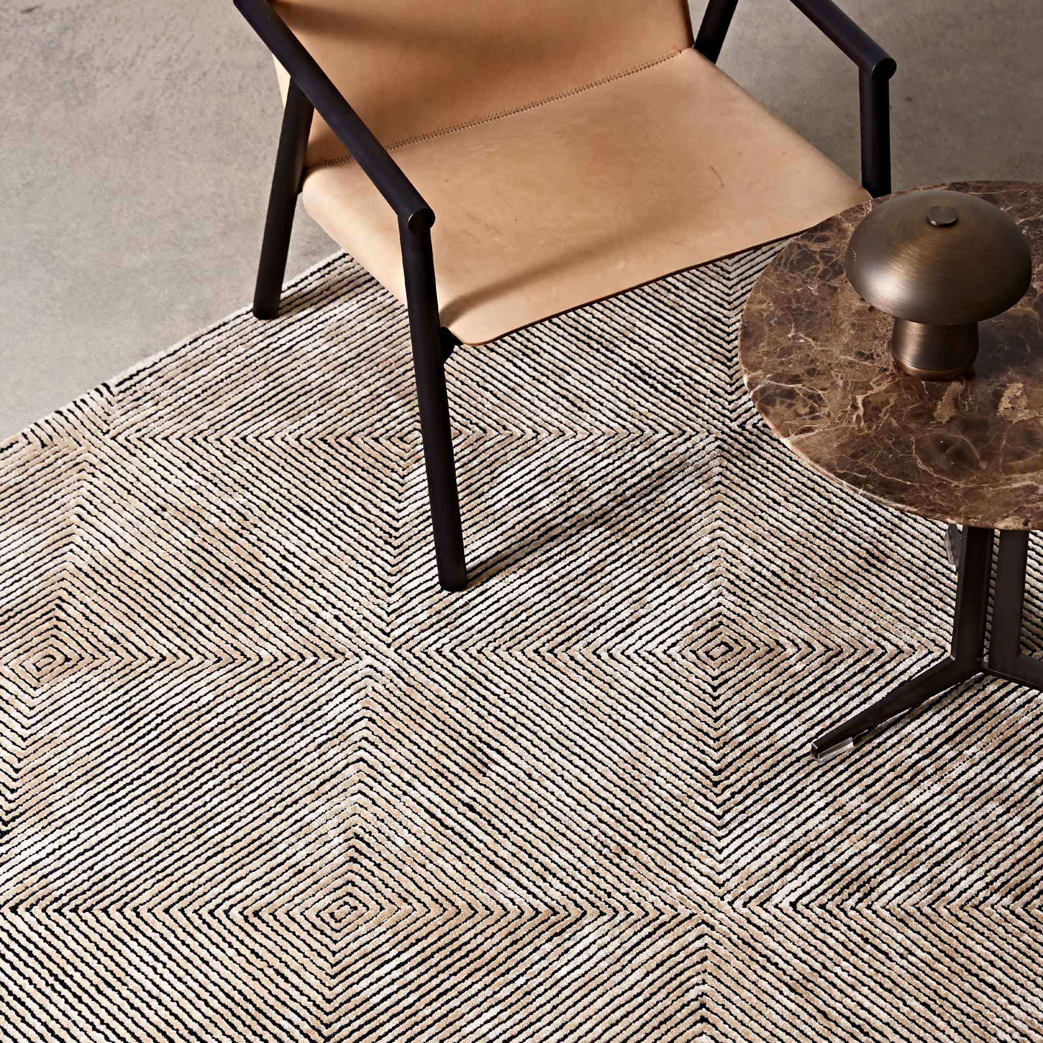 A reinterpretation of our signature Nadia Loop and Viscose texture into a geometry that mimics an aerial view of a city scape.