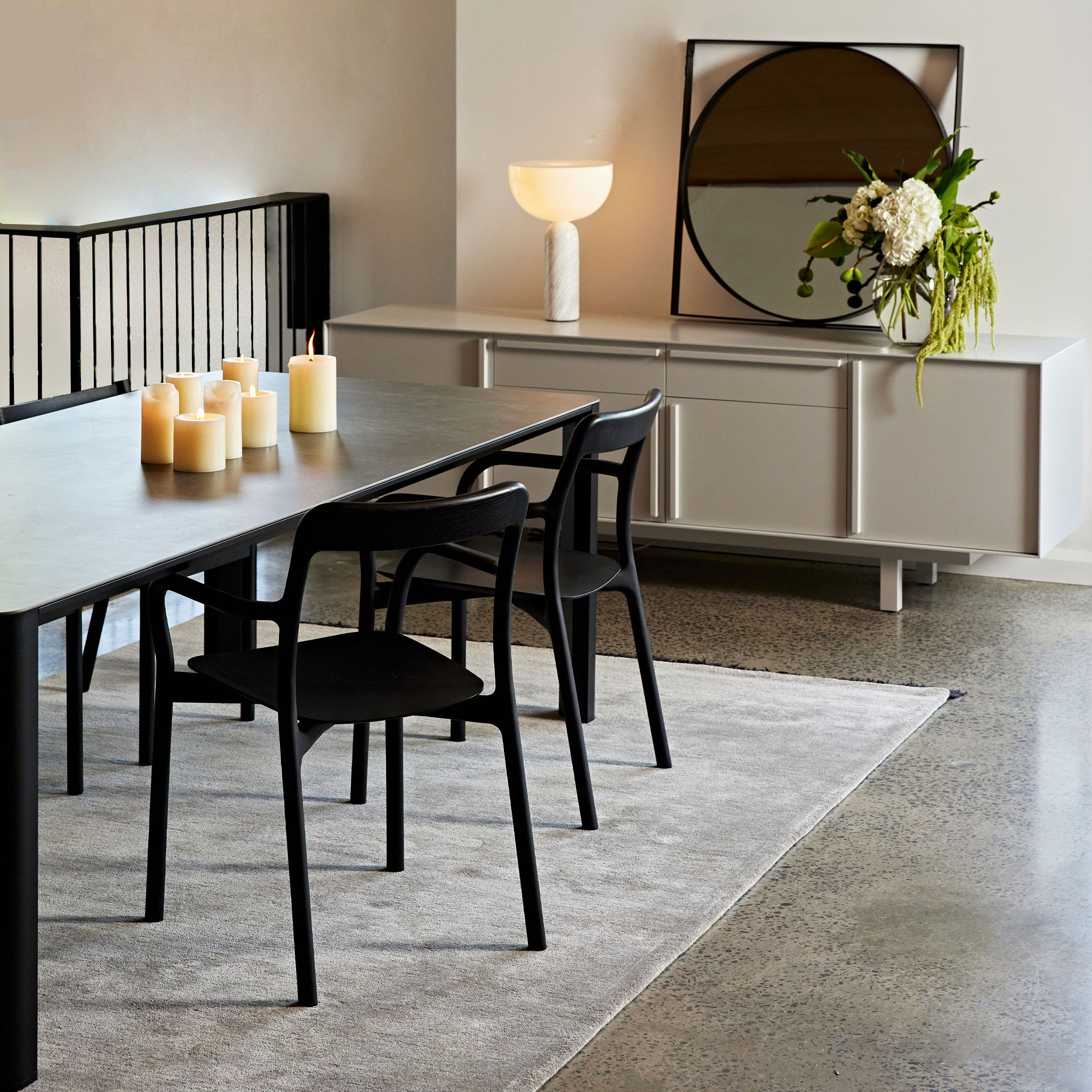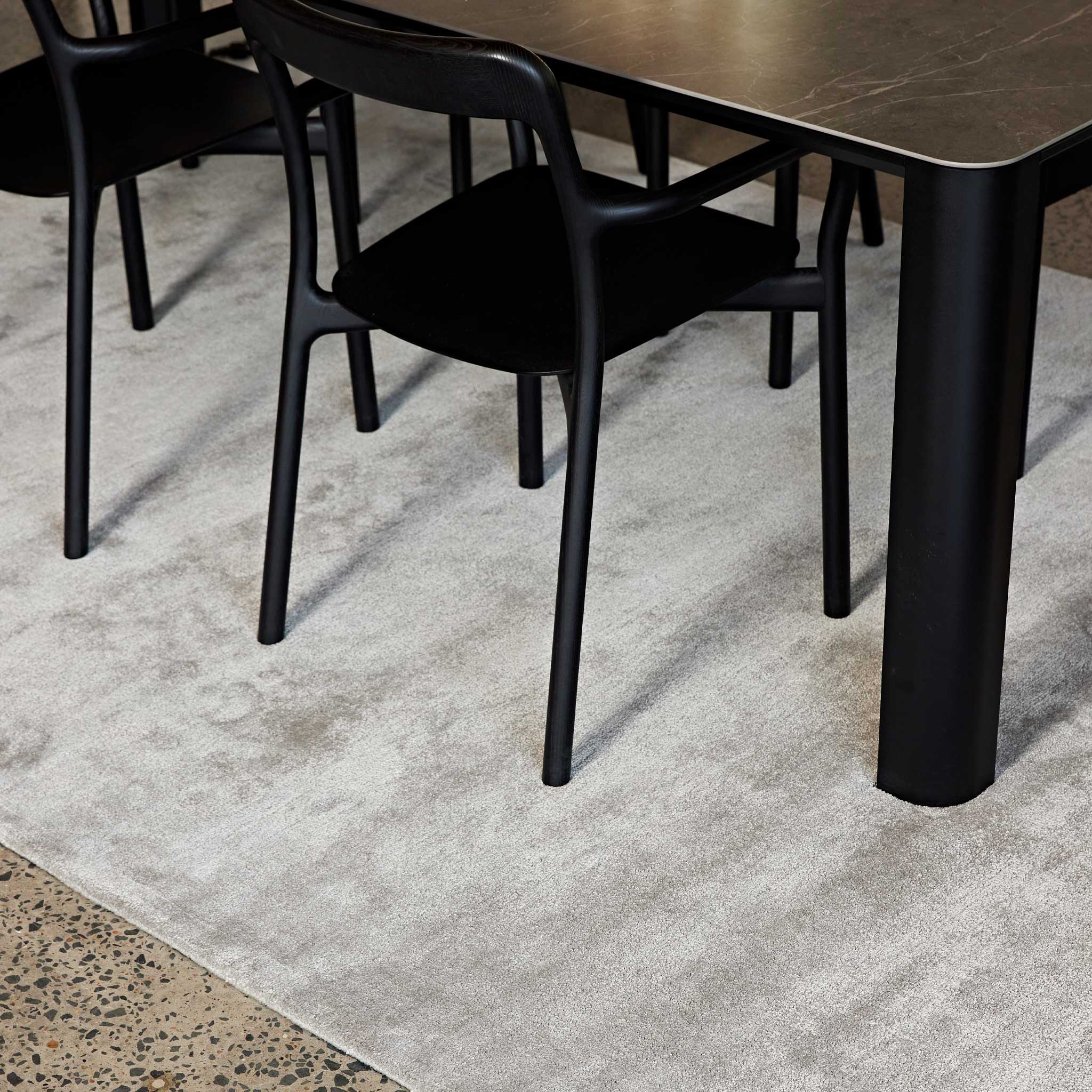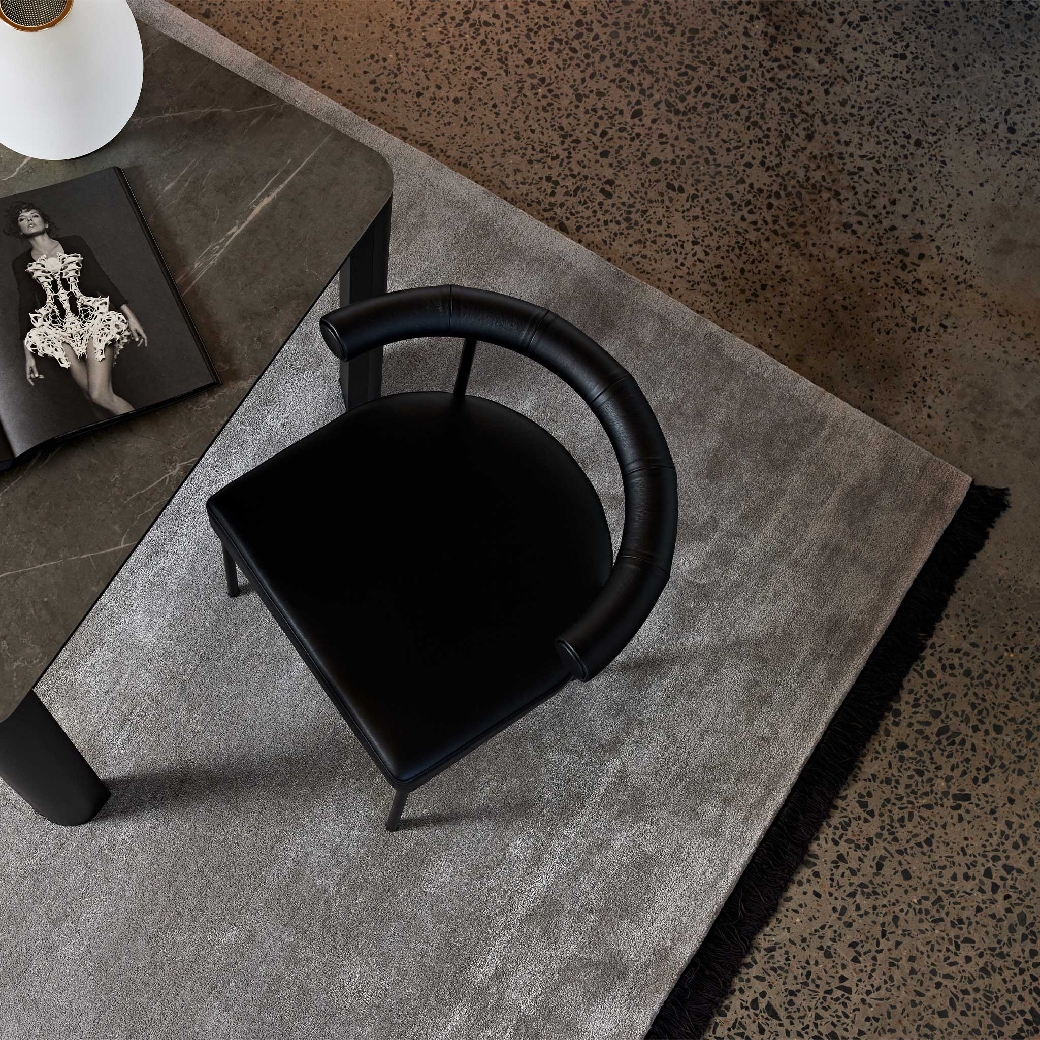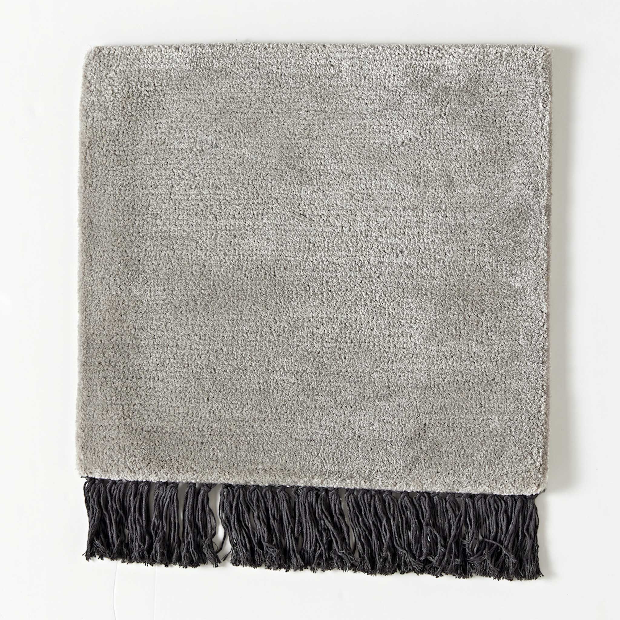 Hand-tufted with exceptional artistry, the Ora Luxe Fringe Silver rug blends the plush comfort of wool with the luminous sheen of art-silk in a sumptuous cut pile. Manufactured to a pile height of 12mm and a substantial weight of 3.00kg/m2, its dense surface provides a rich, reflective quality, while the art-silk fringing, dark as midnight, accentuates the rug's inherent luminosity, mirroring the profound contrast of moonlight on dark stone.