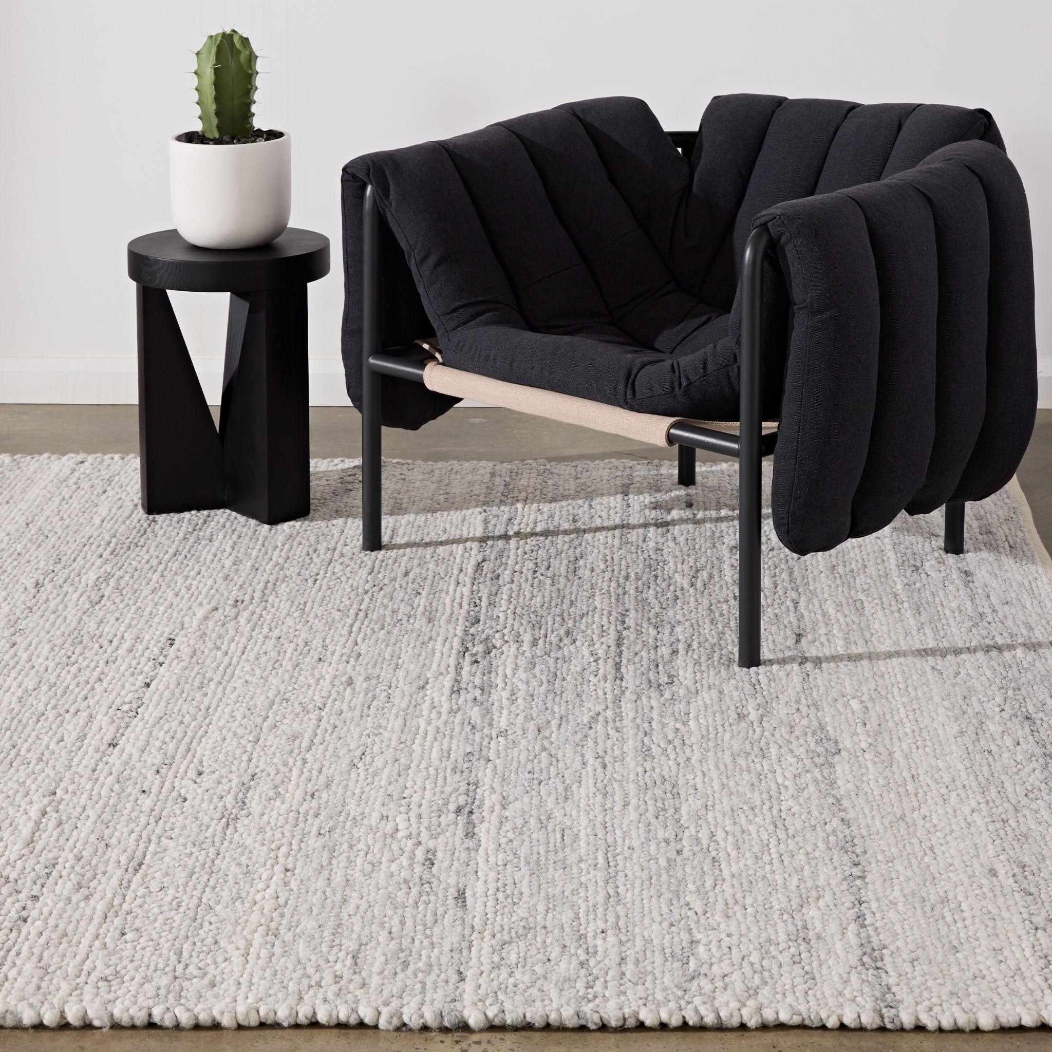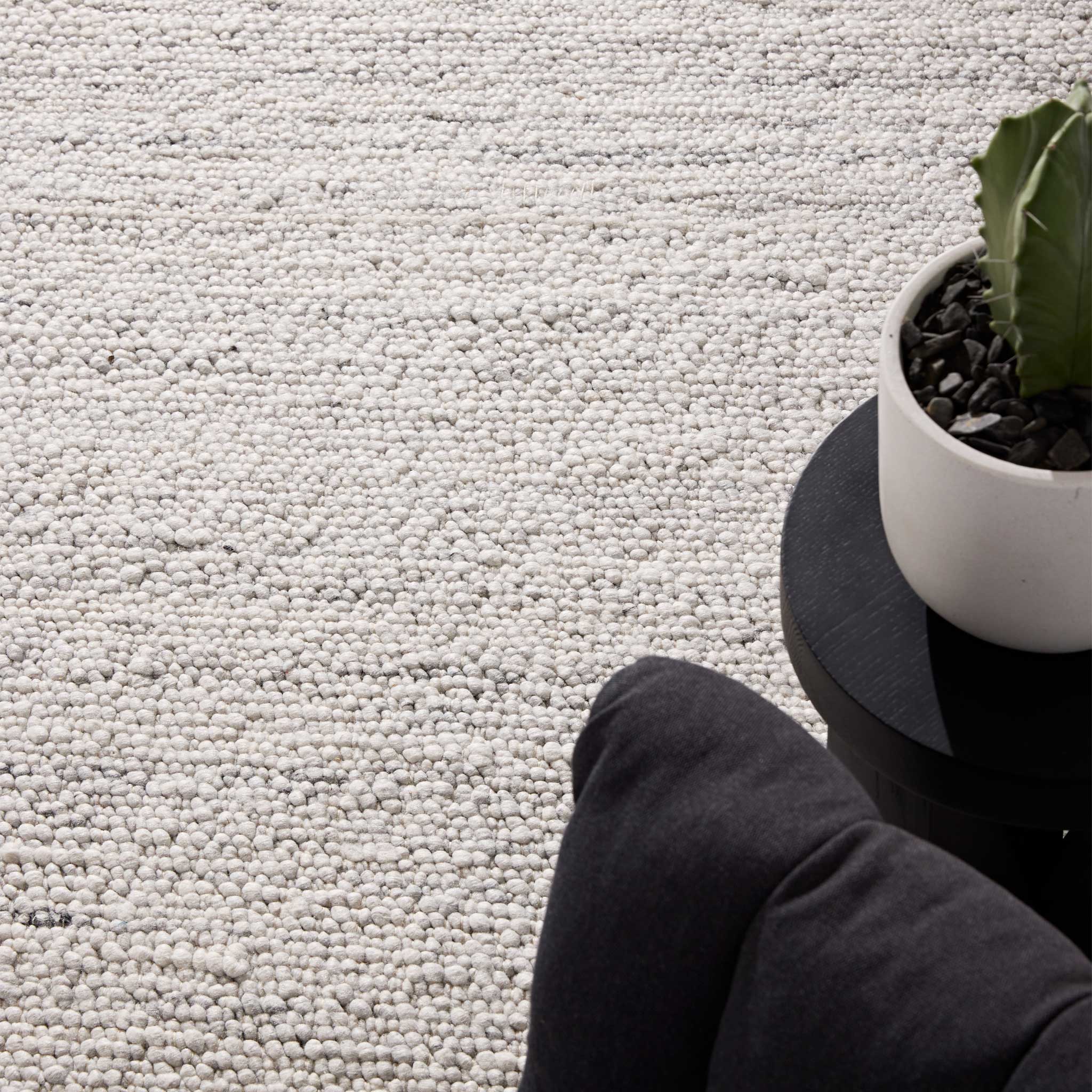 - Hand-woven in 100% felted wool loop pile