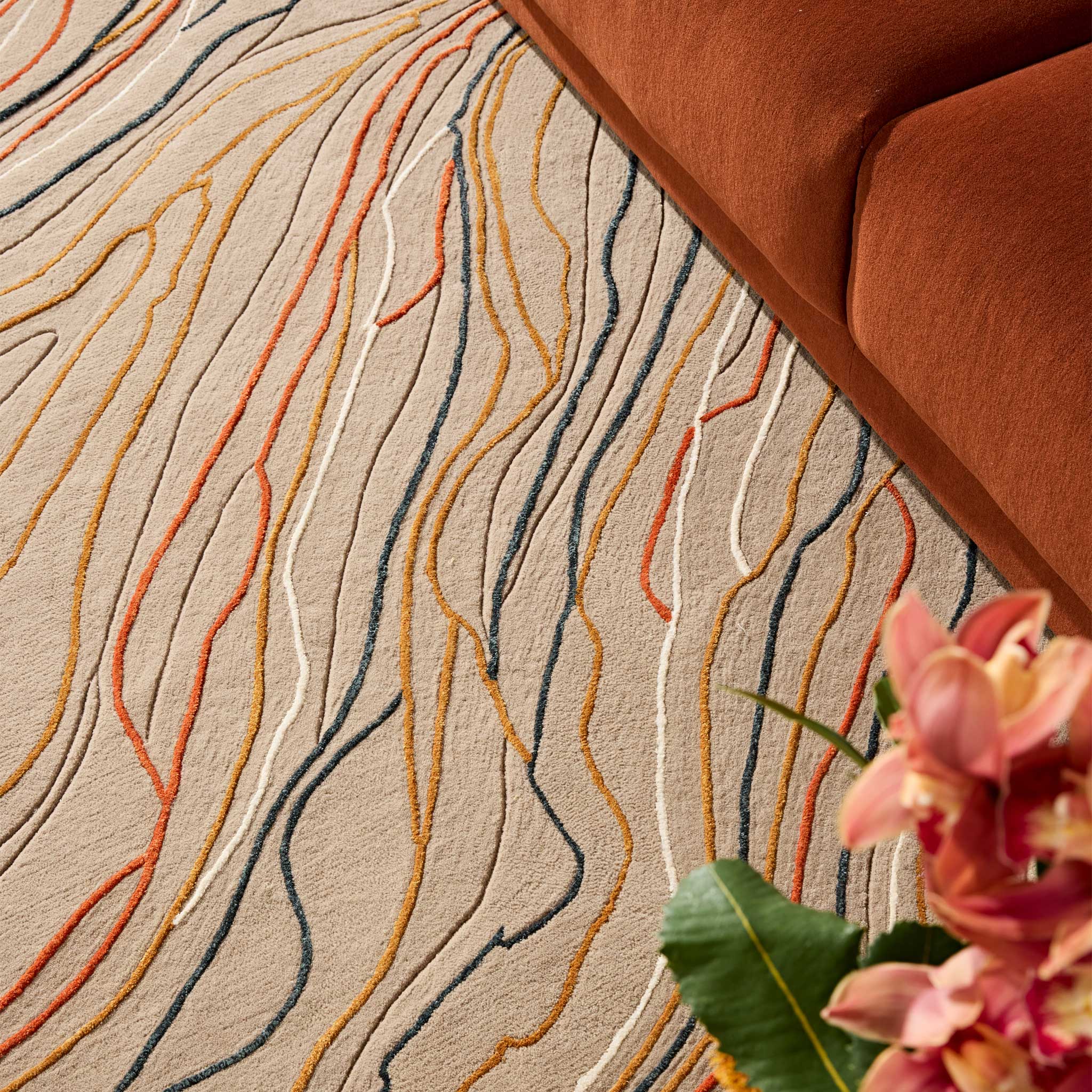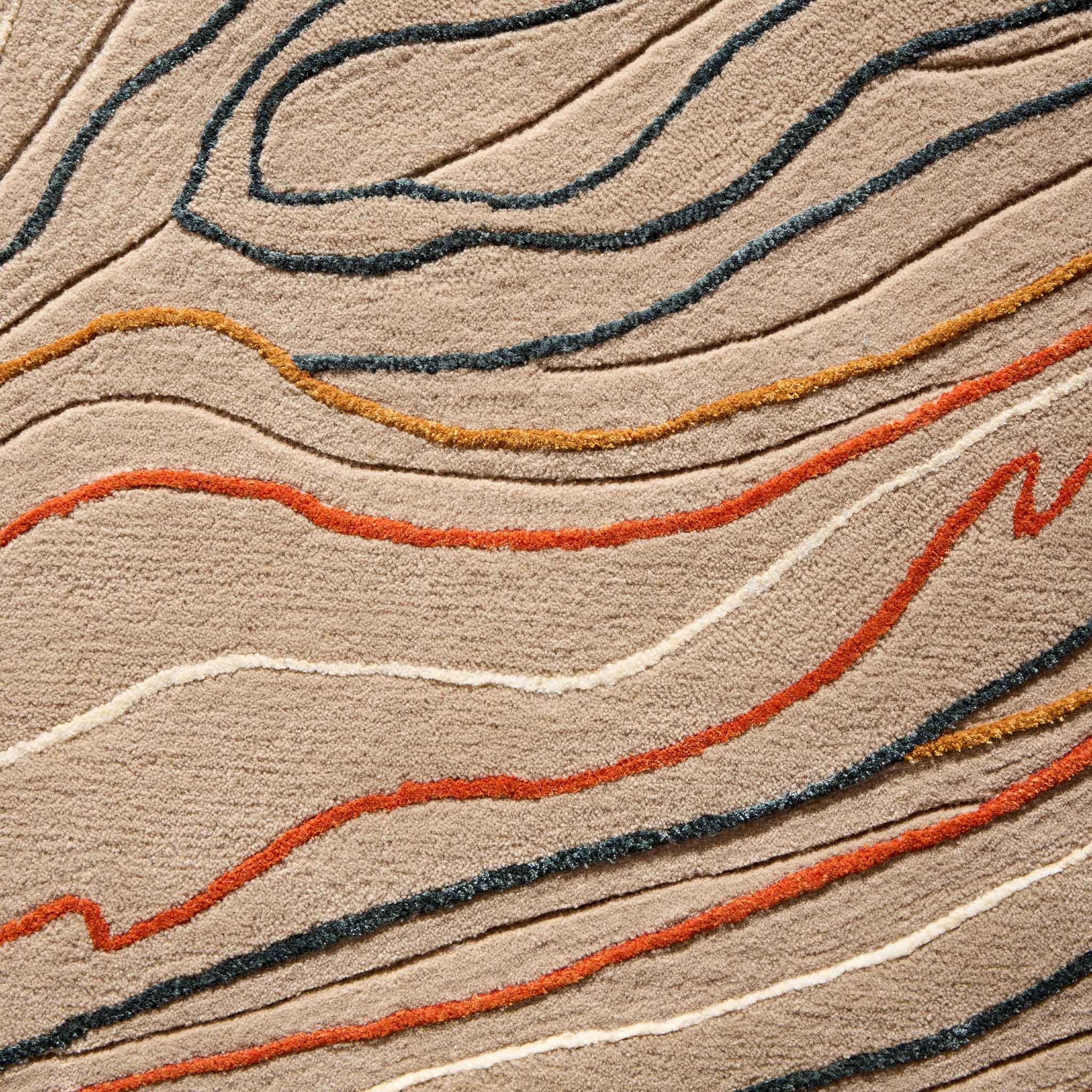 Traverse the intricate landscape of the Tappeti Ora Pleated rug, an approachable entry into world-class textile design. This piece offers a masterful interpretation of a dry riverbed or a detailed topography map, featuring an organically textural surface with striking carving detail. Injections of contrast colour highlight its subtle elevations, creating a visual narrative of natural forces shaping the earth's surface.