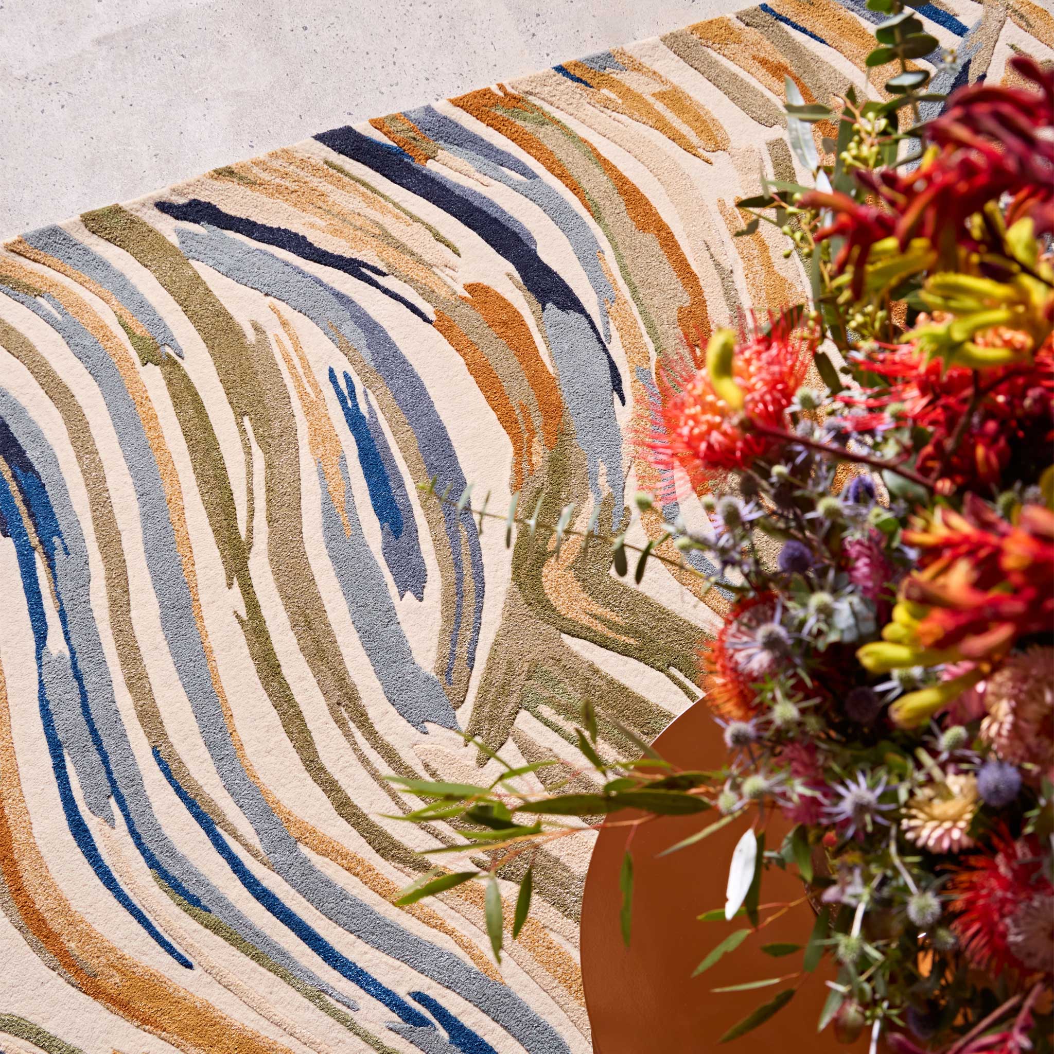 The Indigenous Collection translates original artworks by First Nation artists into three-dimensional luxury rugs using the finest materials such as wool and silk. The copyright of the original designs and stories behind each of the artworks remains the property of the individual artist. Each artist is paid a royalty of every sale.