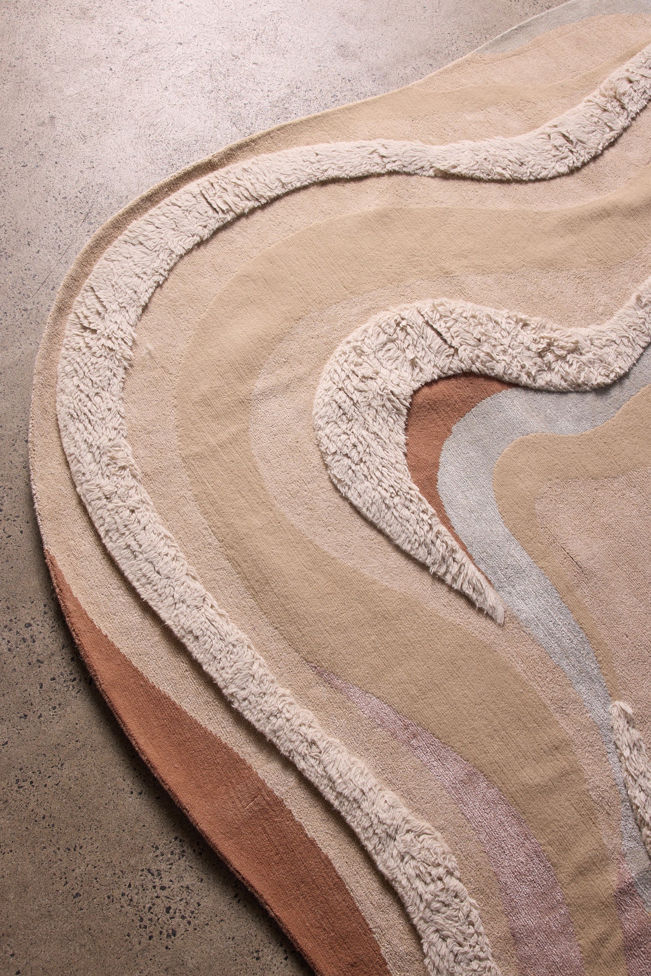 The soft, earthy rose shades of the Petra Rose rug infuse interiors with a sophisticated warmth, a whisper of history and wonder. Its unique geological pattern and the tactile landscape of its pile invite amazement and contemplation.