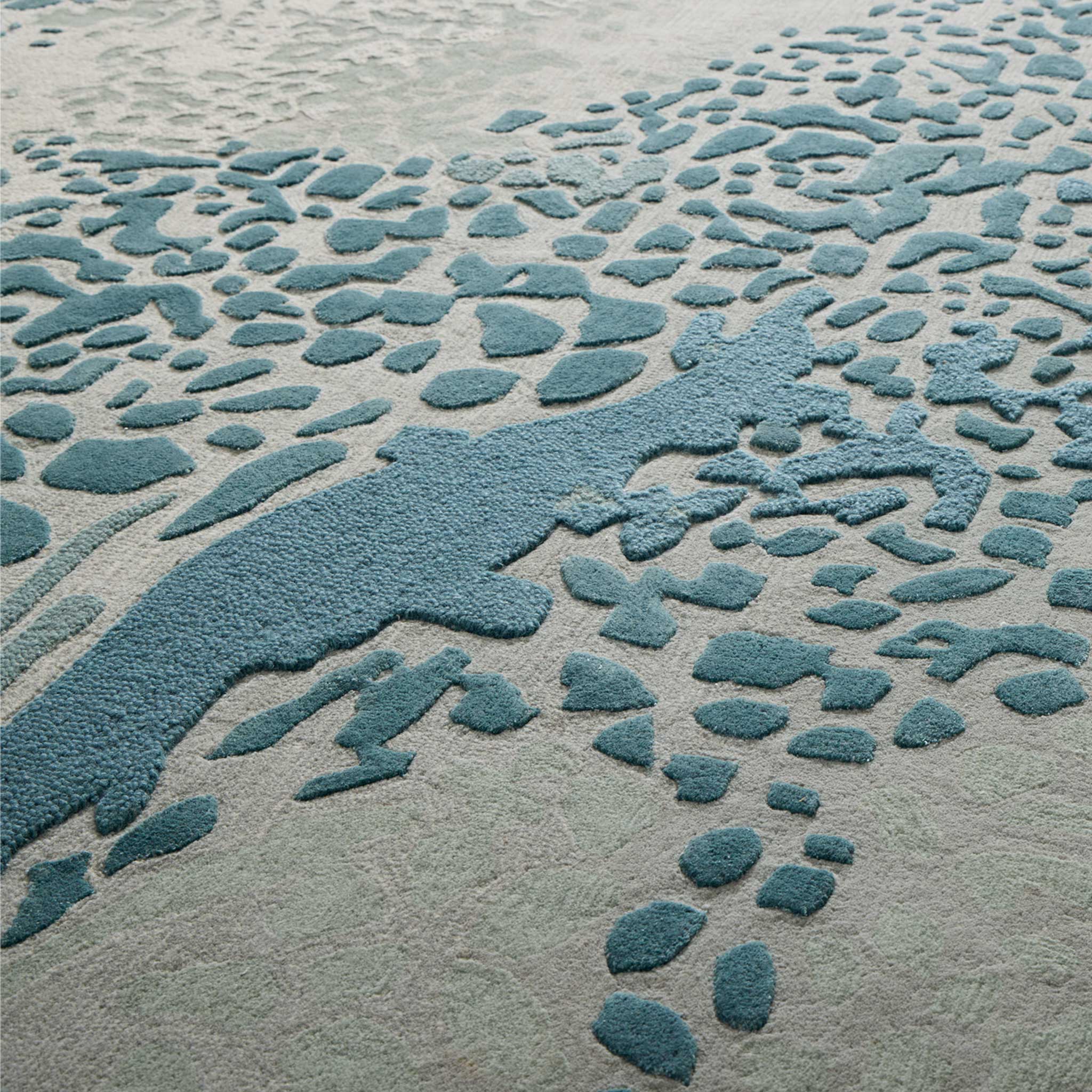 Inspired by the Great Barrier Reef in Australia, this rug features a mix of wool, felted wool and artsilk along with sections of raised piles to create dynamic movement and flow.