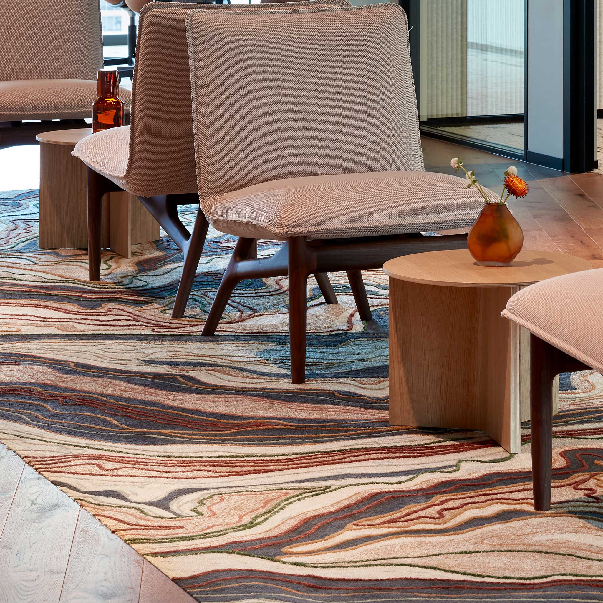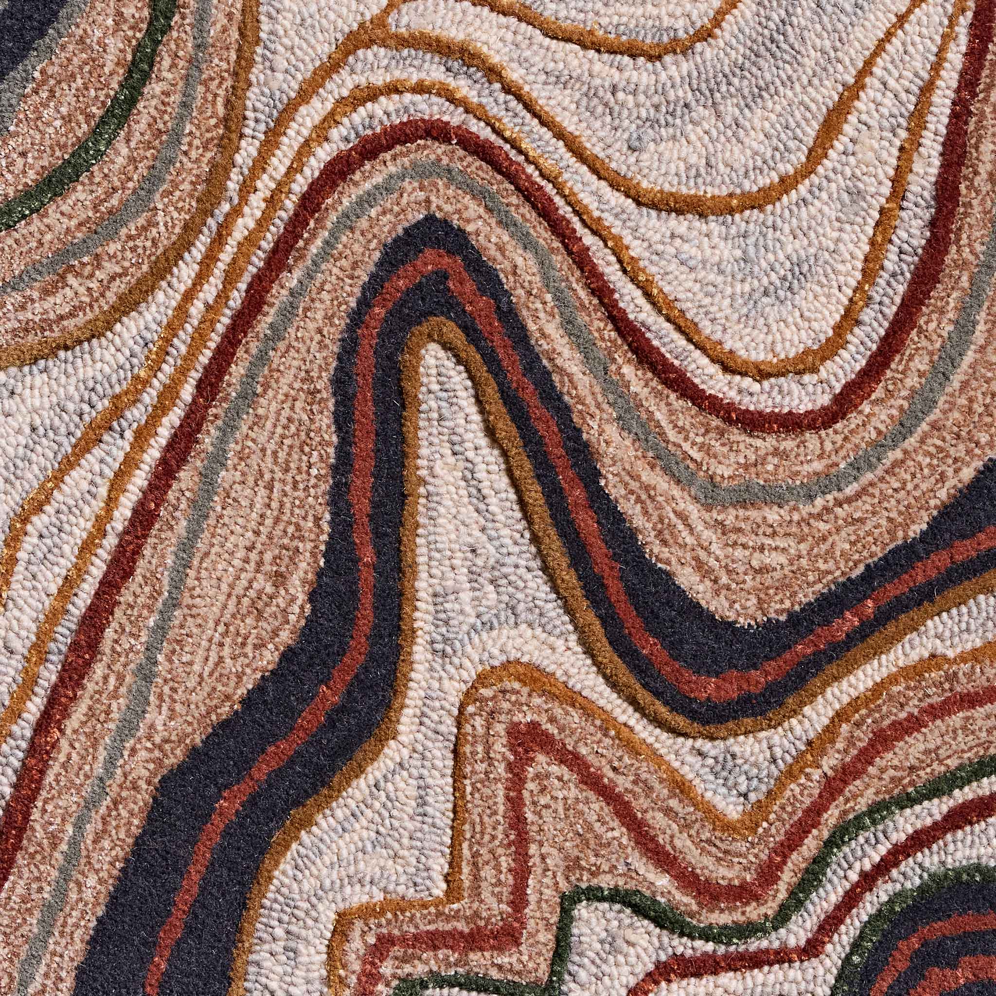 The rug photographed is hand tufted in NZ wool and art-silk.